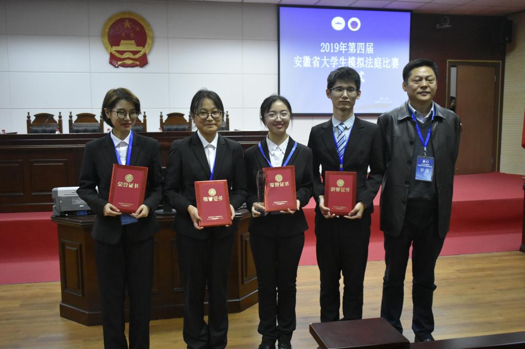 11月23日至24日,安徽省第四届大学生模拟法庭大赛在安徽大学磬苑校区落下帷幕。来自安徽大学等省内21所具有法学类本科专业高校的21支队伍参加比赛。我院法学系代表队沉着应战,一路过关斩将,脱颖而出,勇夺桂冠,荣获团队一等奖。王凌燕、龚伟老师荣获“最佳指导教师奖”,陆勤晶同学荣获“最佳辩手奖”,李雪同学荣获“优秀辩手奖”,全队同时荣获“最佳书状奖”。